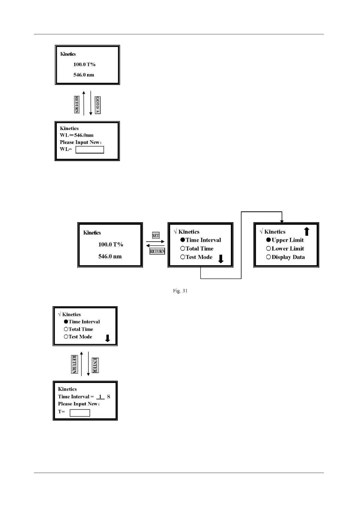 Press [SET] in the kinetics pre-testing screen, and 5 parameters should be set before