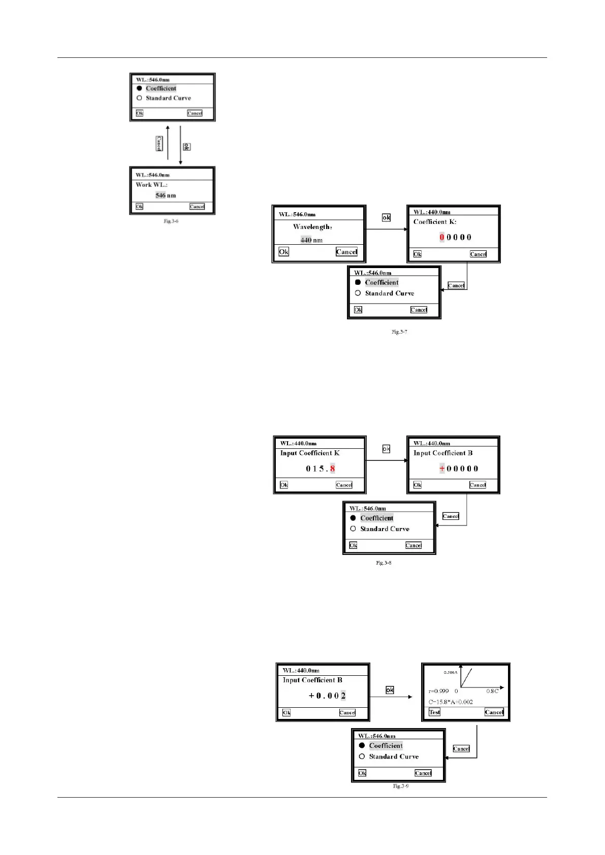 1) Desplace el cursor hasta «Coeciente», después pulse ok para ir hasta la pantalla