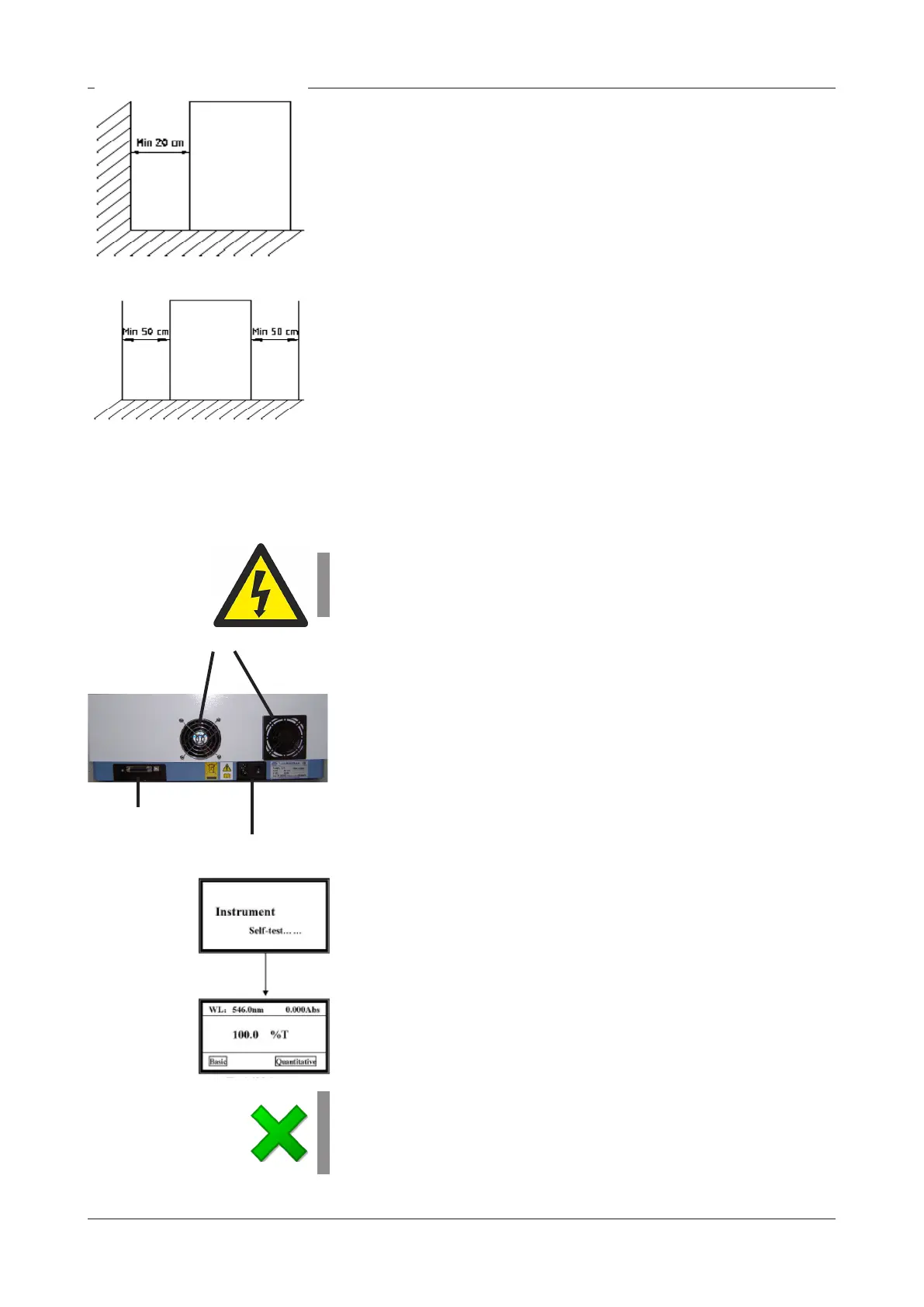 To work in a comfortable way, left a free space of 50cm around the equipment and