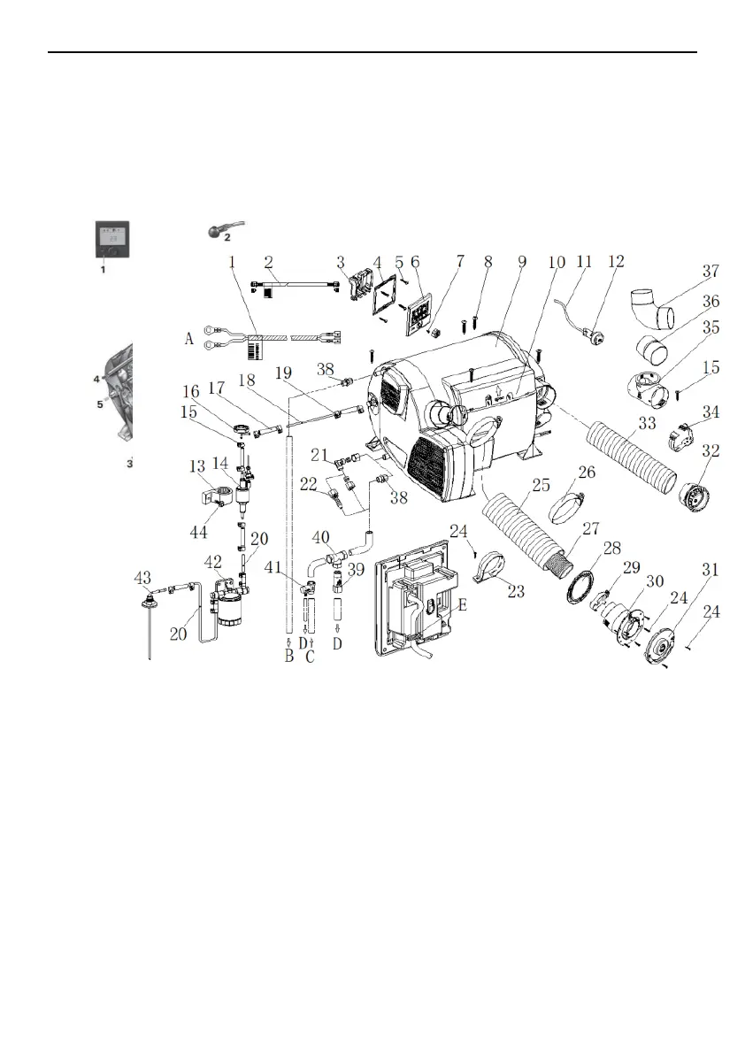 14. Fuel pump 15. Fuel pump clamp 16. damper 17. Fuel connection clamp 18. Fuel lie(heater to pump, transparent)