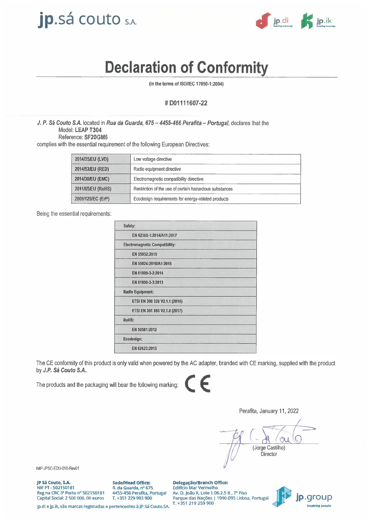 J. P. Sá Couto S./1. located in Rua da Guarda, 675 - 4455-466 Perafita - Portugal, declares that the