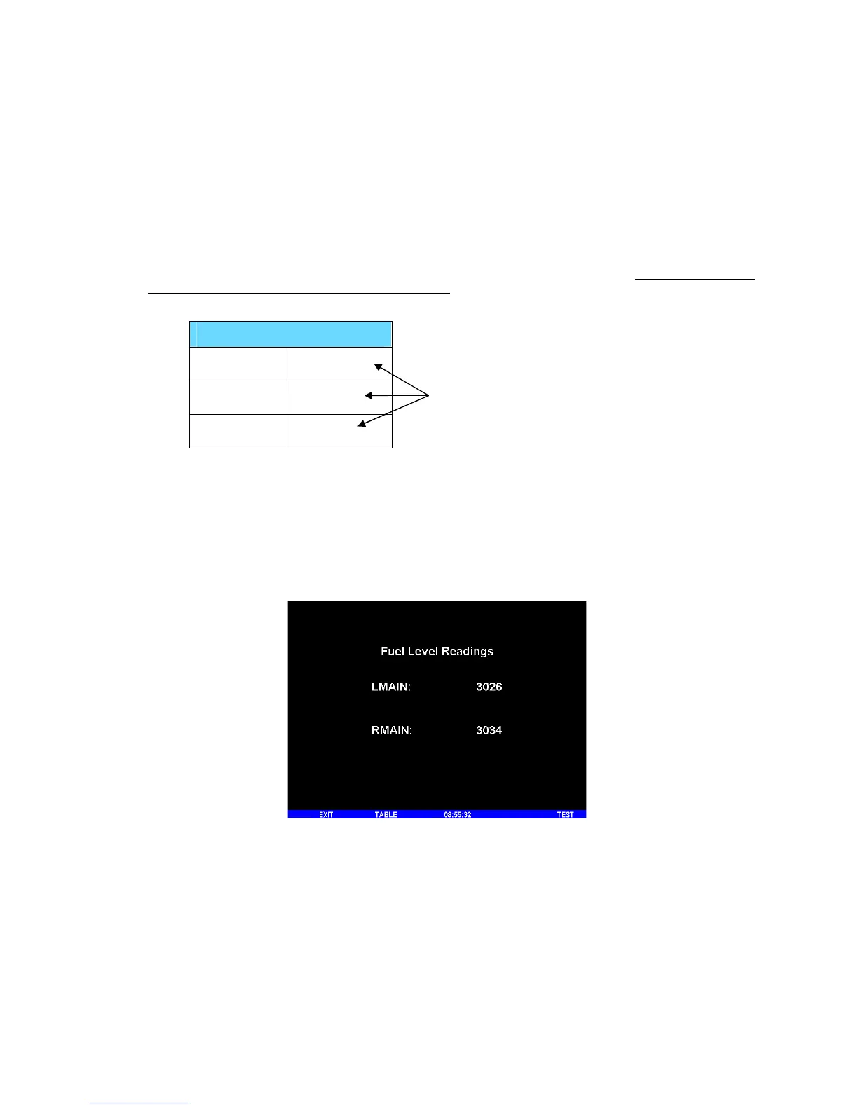 reading is always taken with unusable fuel in the tank. Example of a completed 3 point table for LEFT tank: