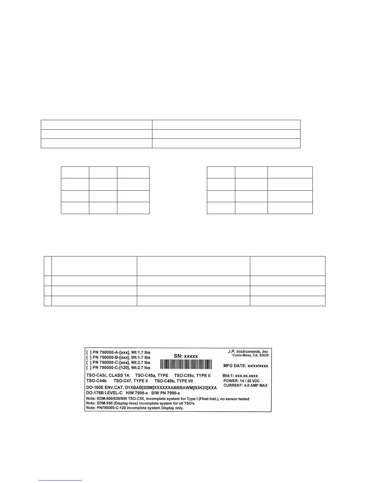 Example PN 790000-(X)-(XXX) (X) denotes EDM-900 or EDM-930, (XXX) denotes Part Number for a specific