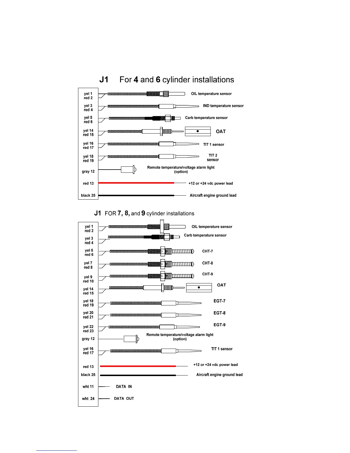 JPI EDM-900 - J1 Connector Pin Assignments; For 4 and 6 Cylinder Installations; For 7, 8, and 9 Cylinder Installations