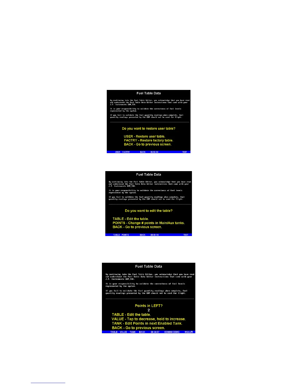 causes the fuel table stored on the Key Card to over-write any previous user entries in the fuel table. Use
