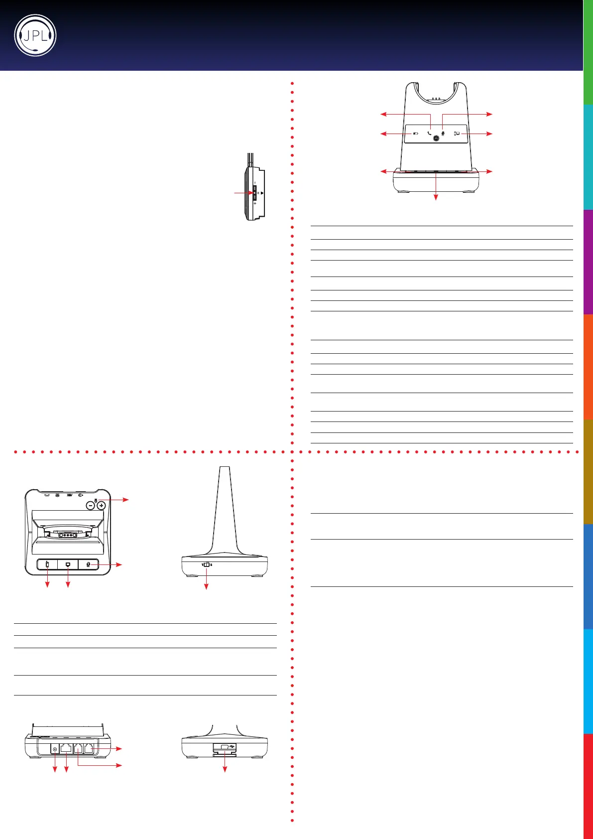 To test, take the headset o of the base station and the ‘Green TEL Light’ should activate.