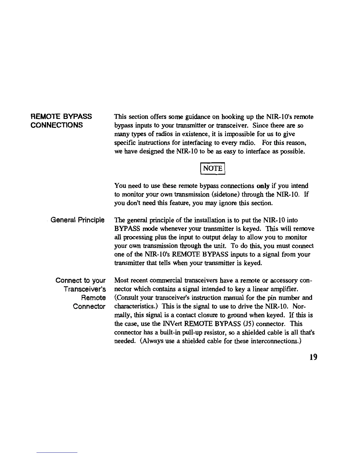 JPS Communications NIR-10 - Remote Bypass Connections; Connect to Your Transceivers Remote Connector