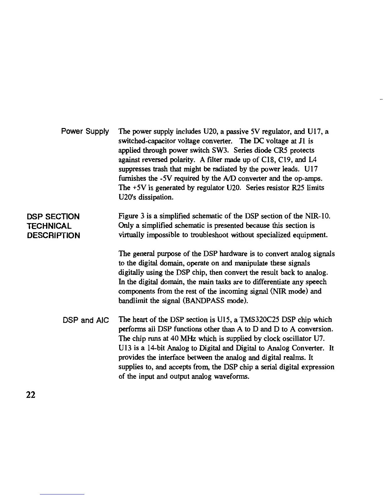 JPS Communications NIR-10 - DSP Section Technical Description; DSP and AIC; Power Supply