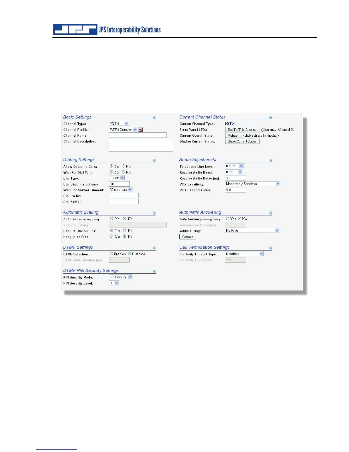 As can be seen on the PSTN channel type configuration page, there are a number of configuration