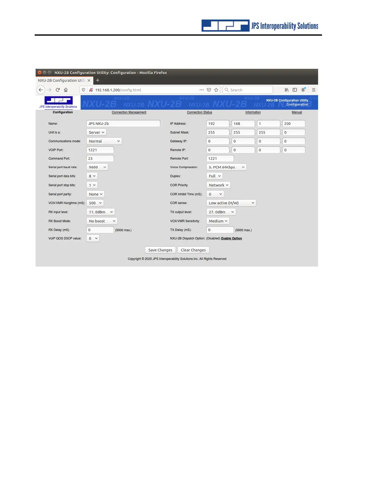 to open the unit’s Configuration Page as shown above. Configuration parameters are set via