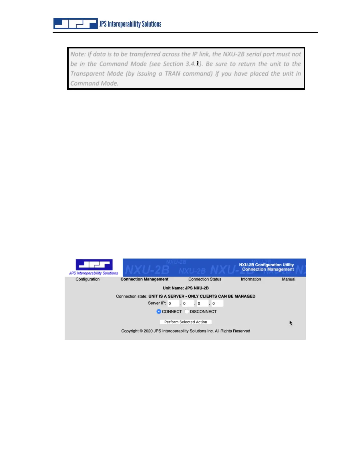 Note: If data is to be transferred across the IP link, the NXU-2B serial port must not