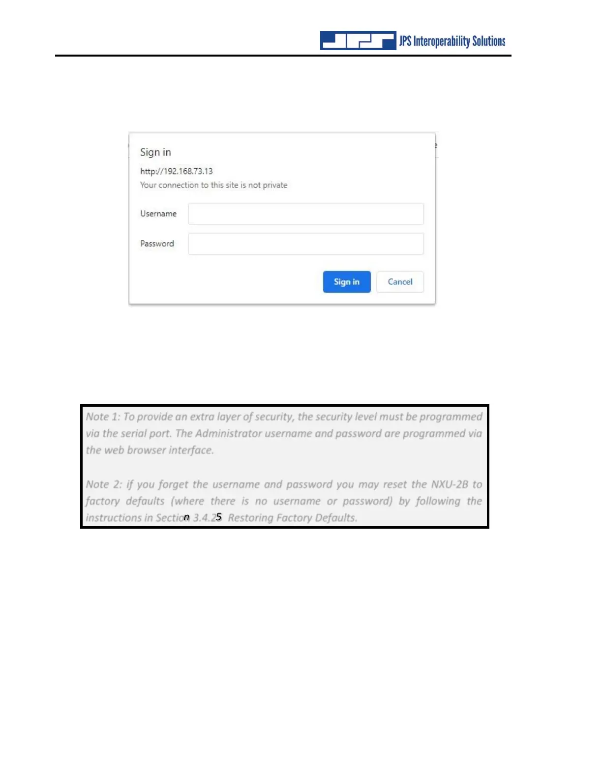 the unit via HTTP will result in the web browser displaying the following dialog:
