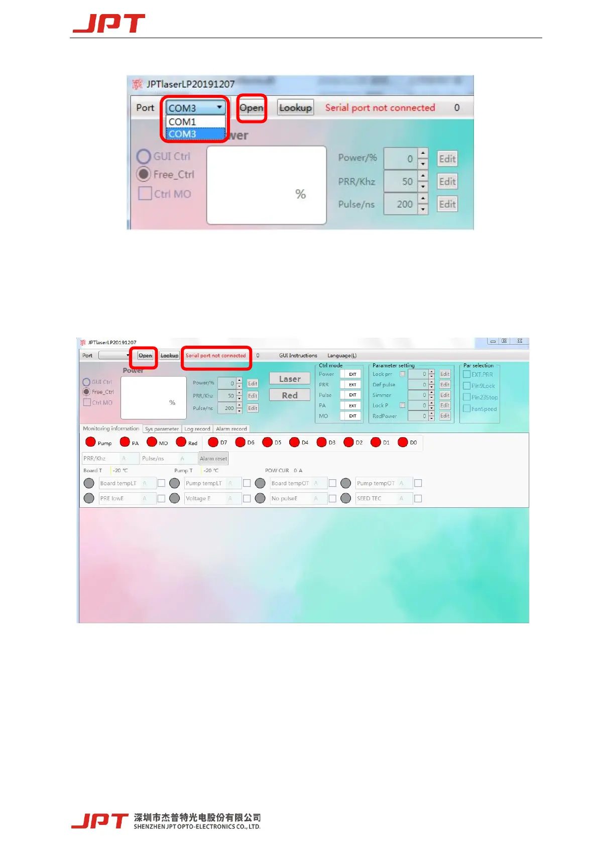JPT YDFLP-E-20-LP-S - GUI Control Functions