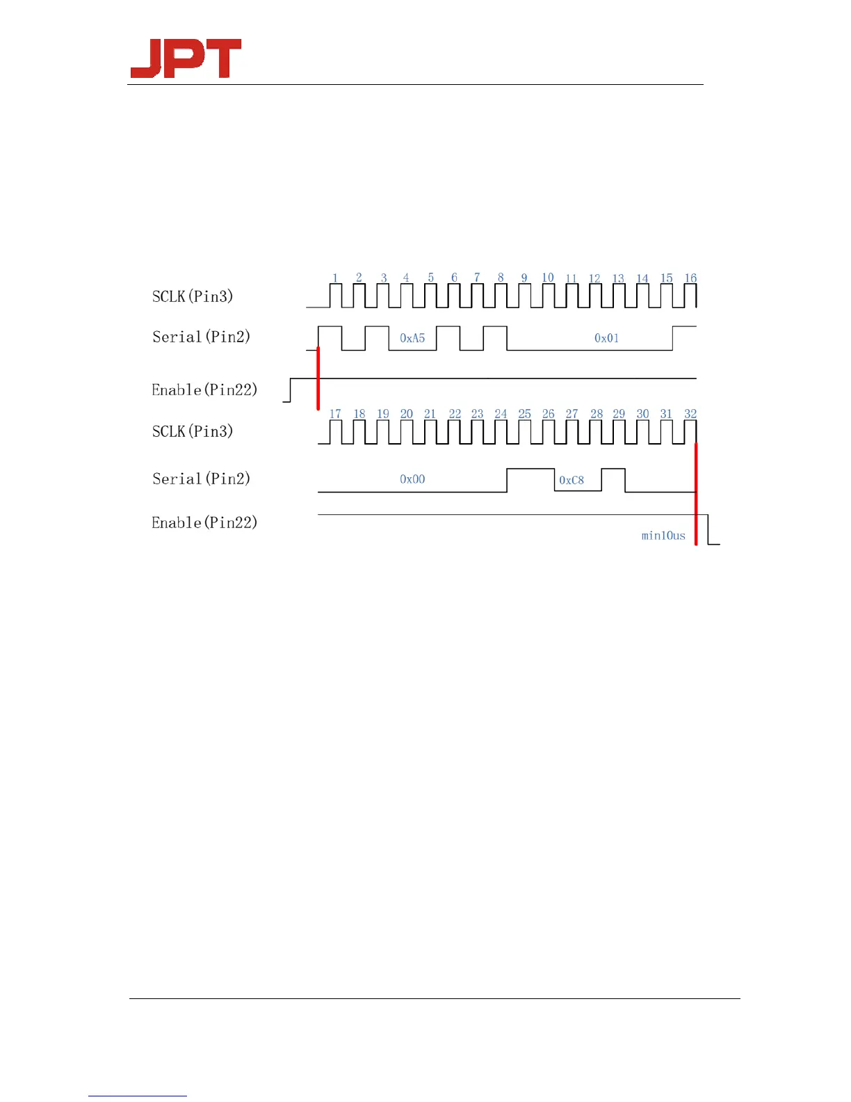 Below is the 200ns pulse width sample serial clock diagram, The byte order is below when