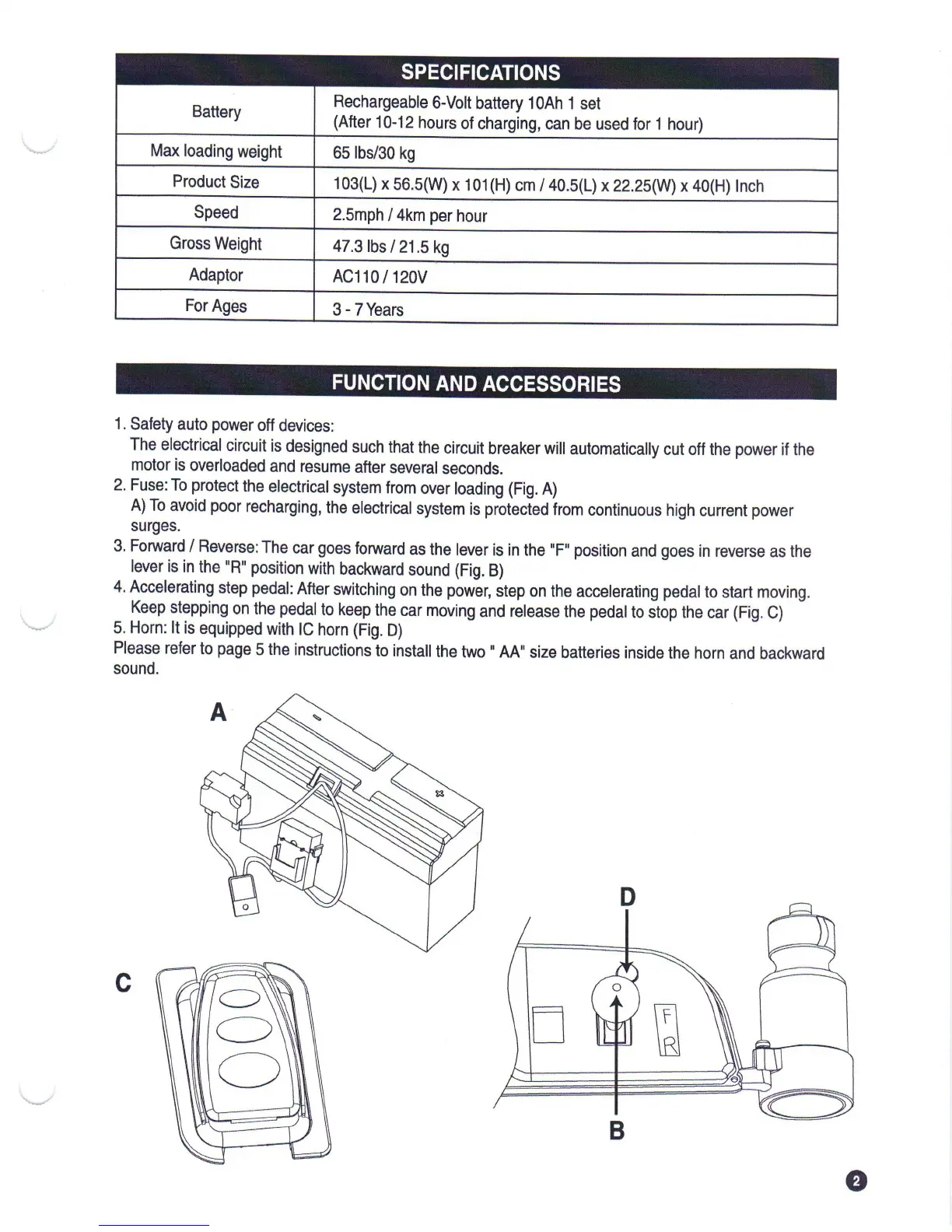 Jr. Pro 0206 - SPECIFICATIONS; FUNCTION AND ACCESSORIES