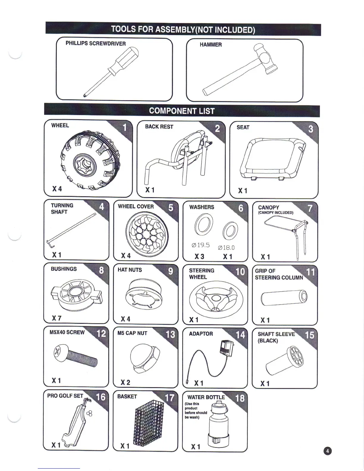 Jr. Pro 0206 - TOOLS FOR ASSEMBLY; COMPONENT LIST