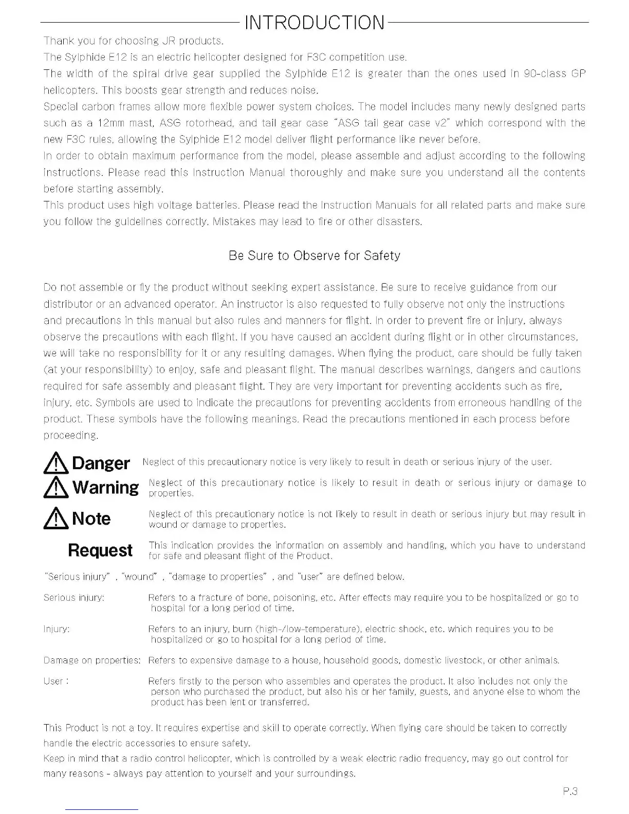 JR ProPo Sylphide E12 - INTRODUCTION; Introduction and Safety Overview