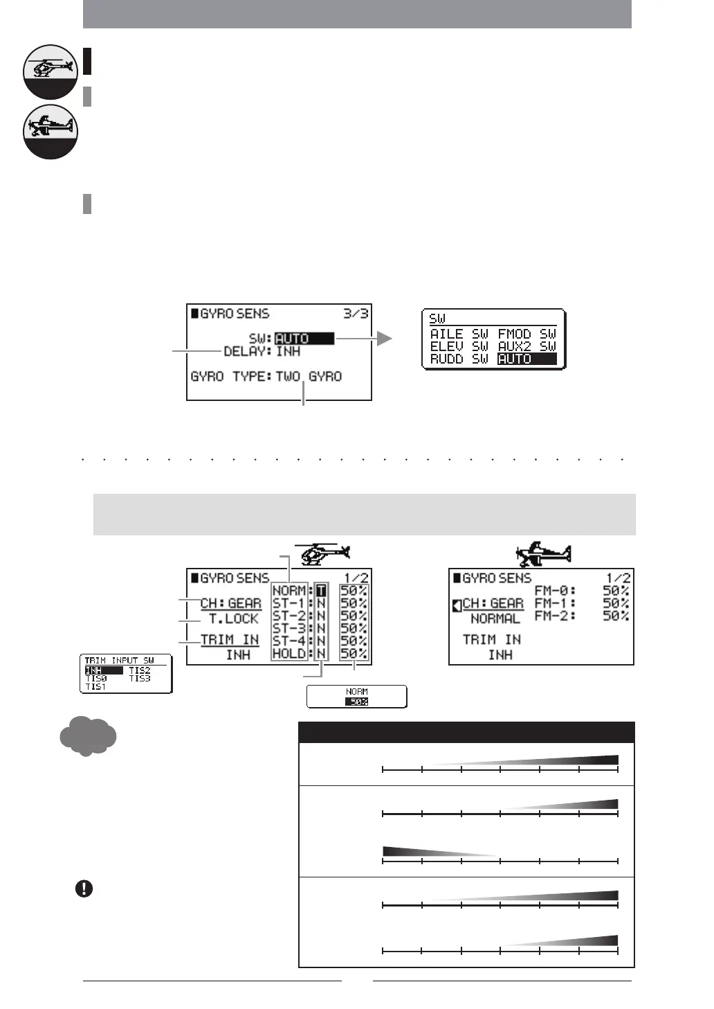 ThisfunctioncontrolsthegyrosensitivityusingtheGEARchannelandtheAuxiliary(AUX)channel.Ithasa