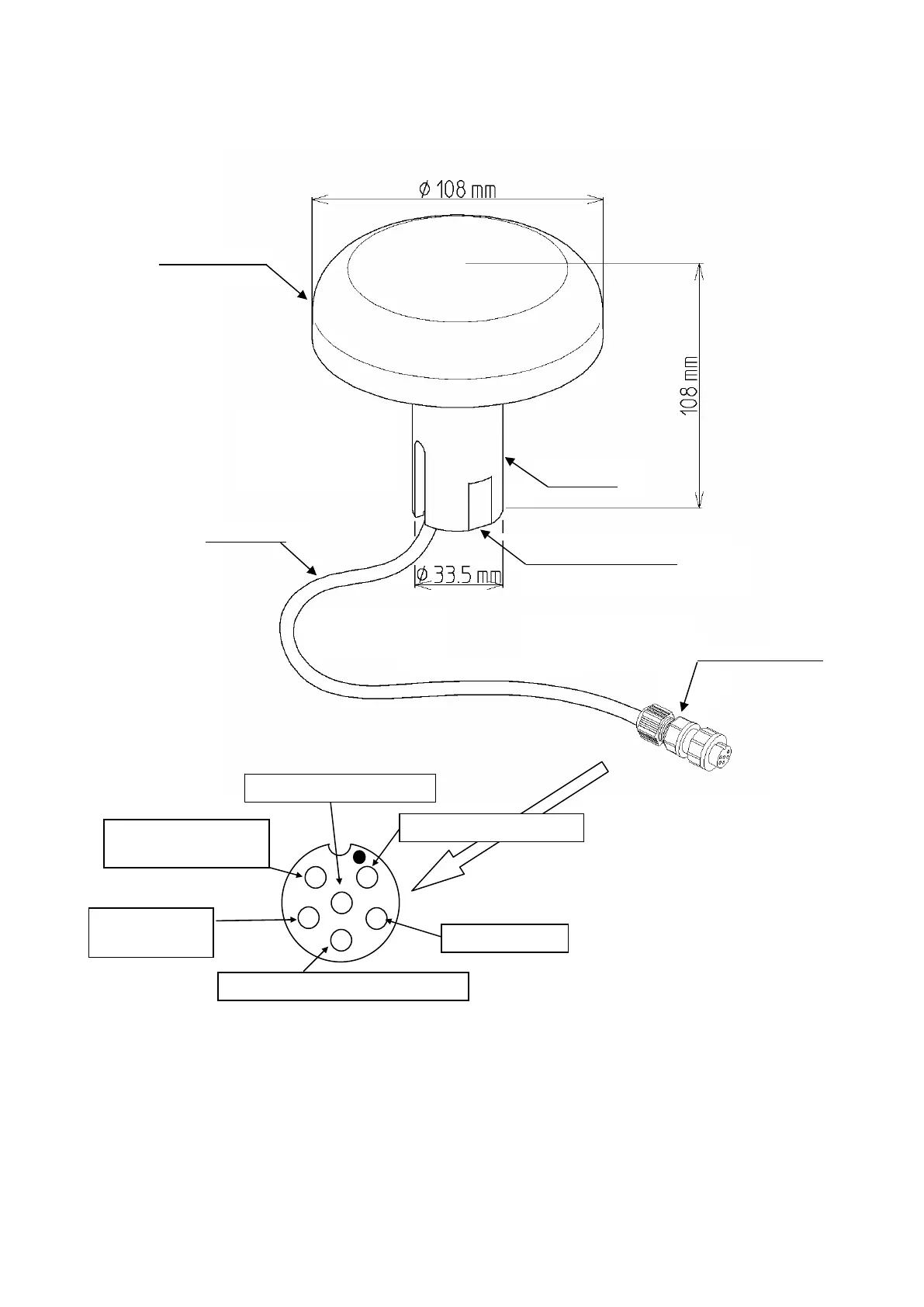② CABLE: Supplies DC power for the antenna and inputs/outputs data to a navigation equipment.
