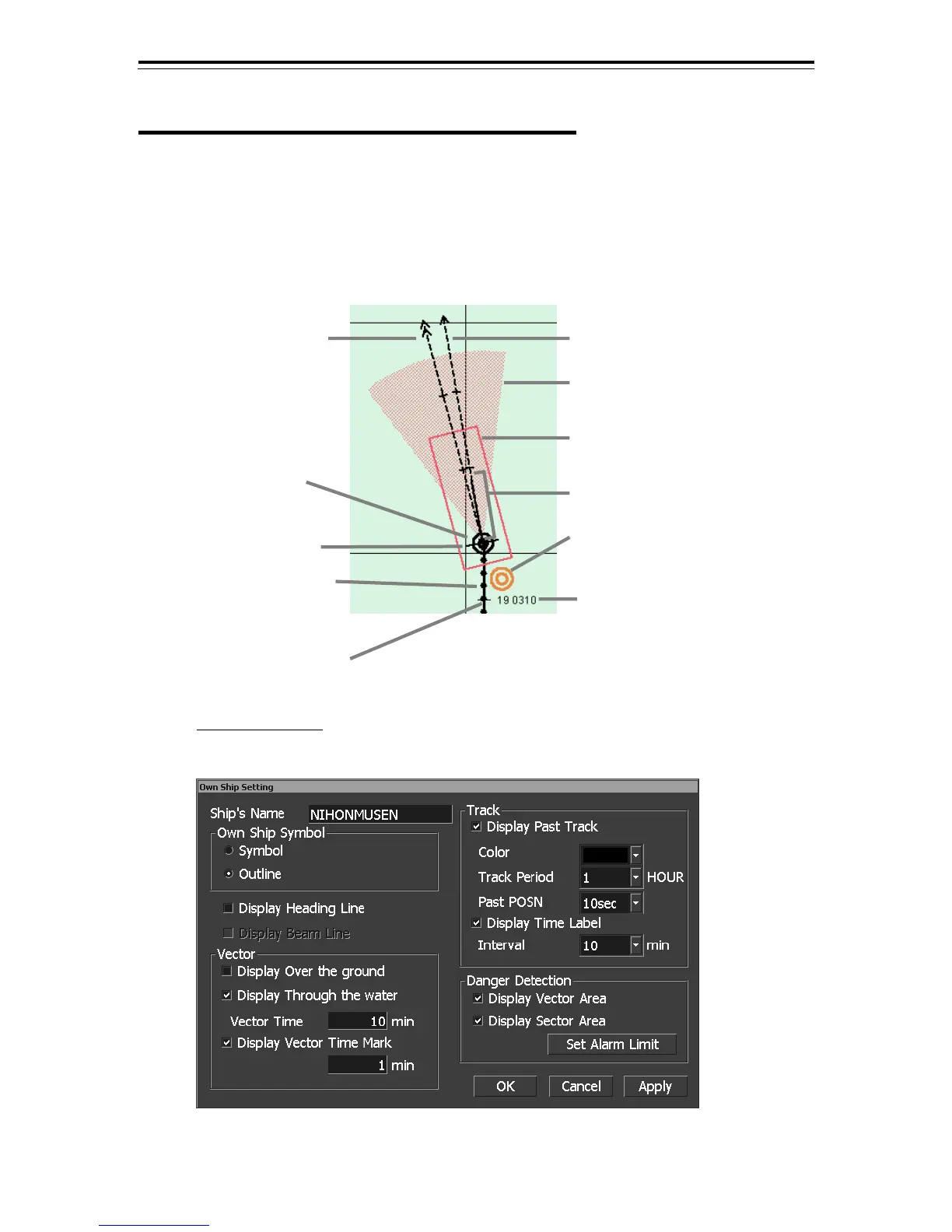 Select [MENU] - [(4) Ownship/Track] - [(0) Setting] in that order.