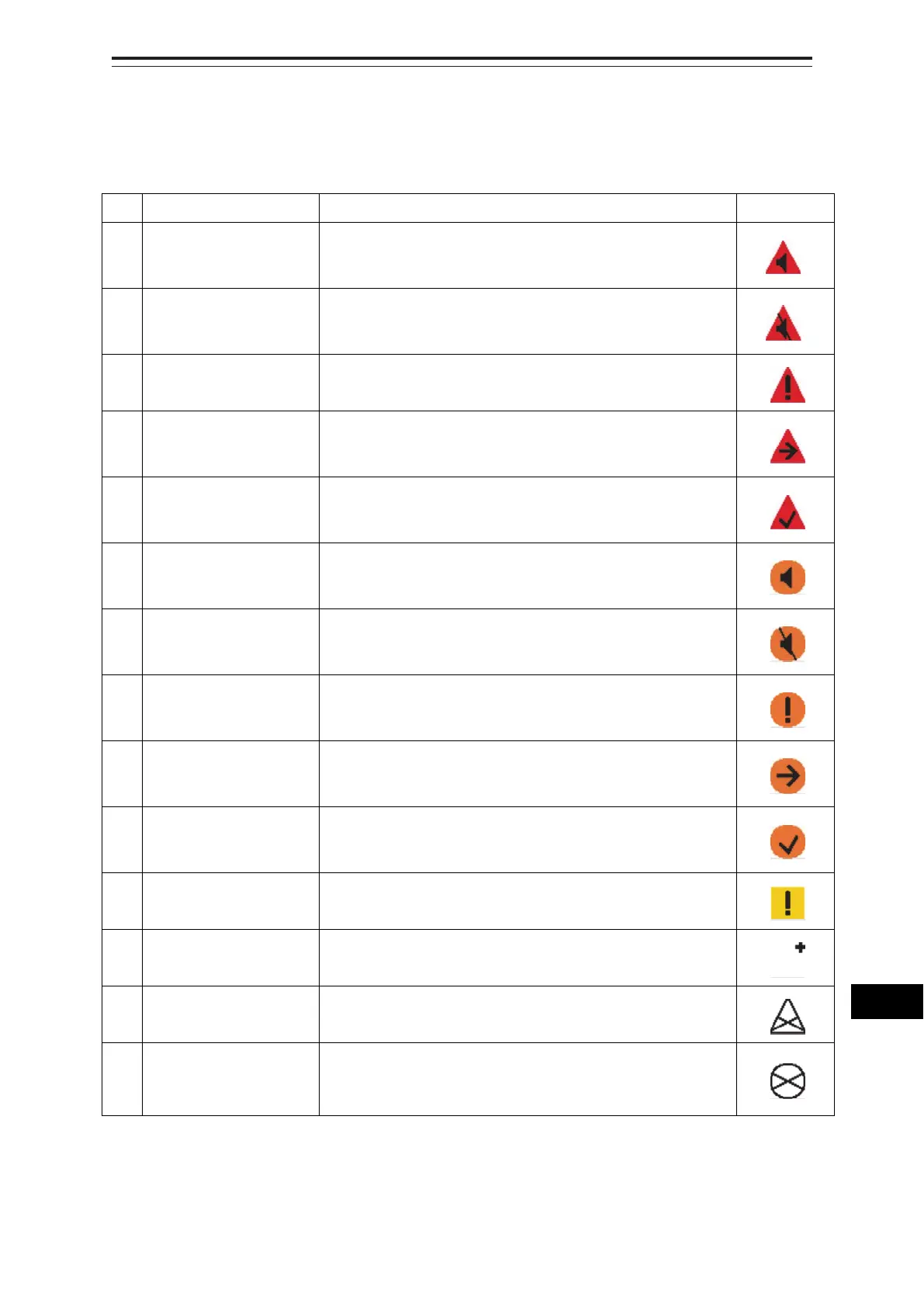 No. Name of alert icon Functional outline Alert icon