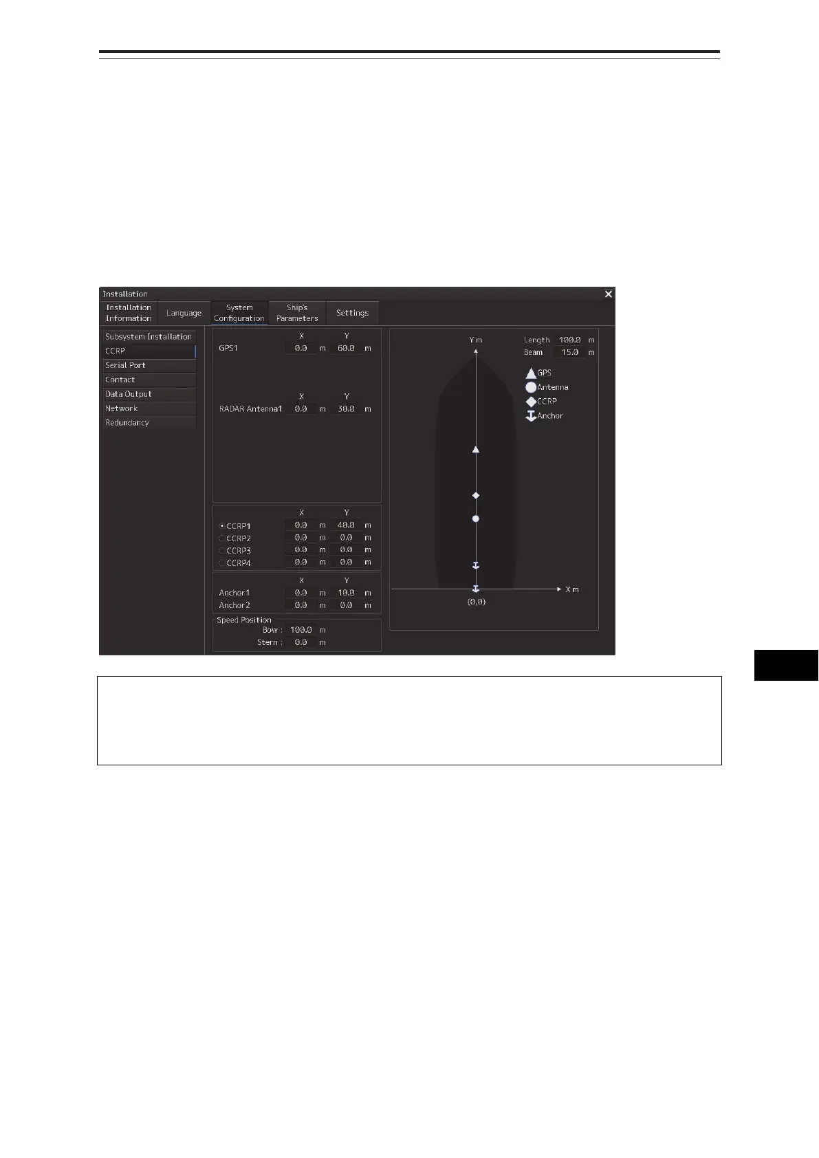 Set a measurement reference position (CCRP) on own ship by using the [CCRP] dialog.