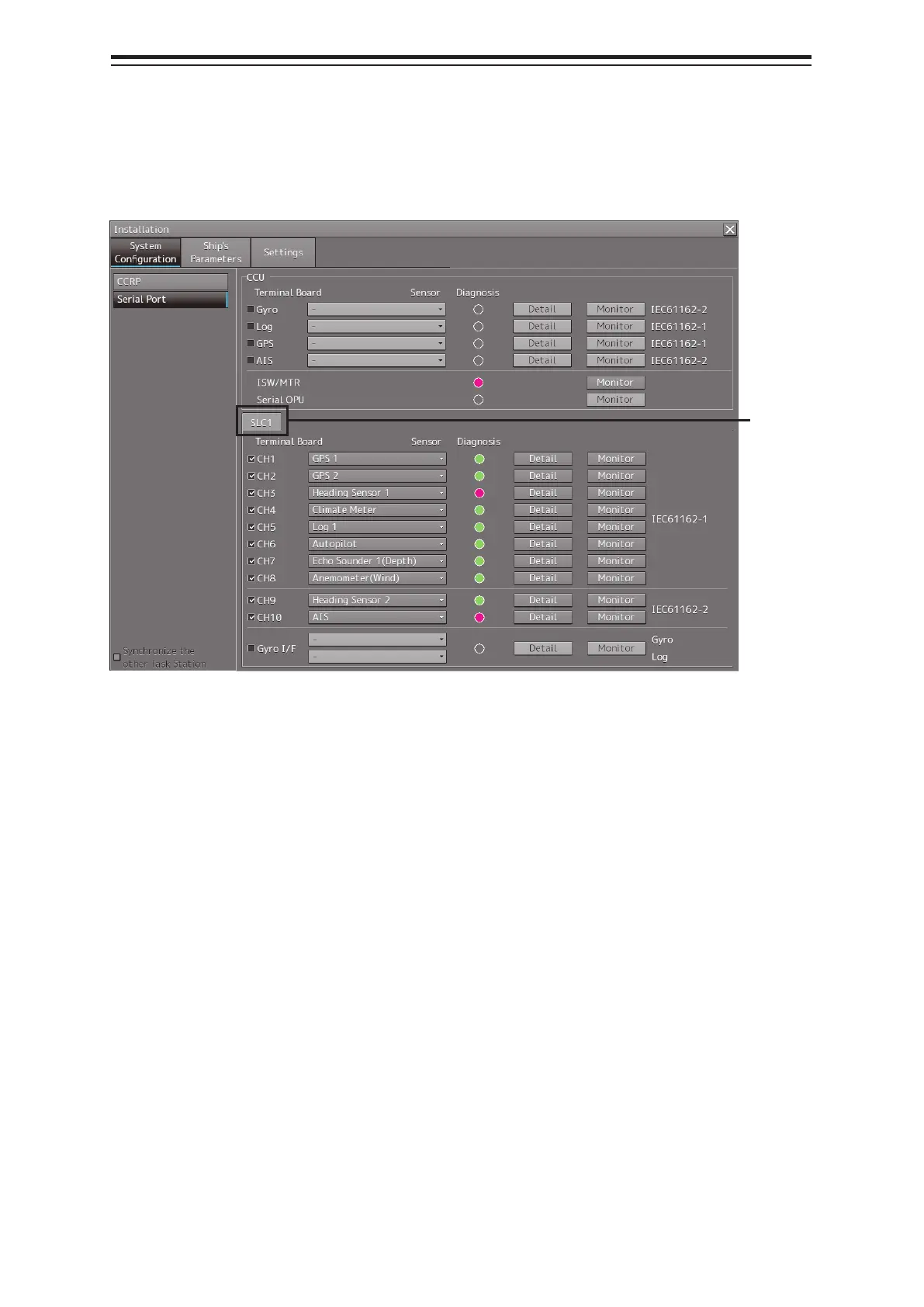 In the [Serial Port] dialog, allocate the sensors to be connected for the serial port on CCU (Central
