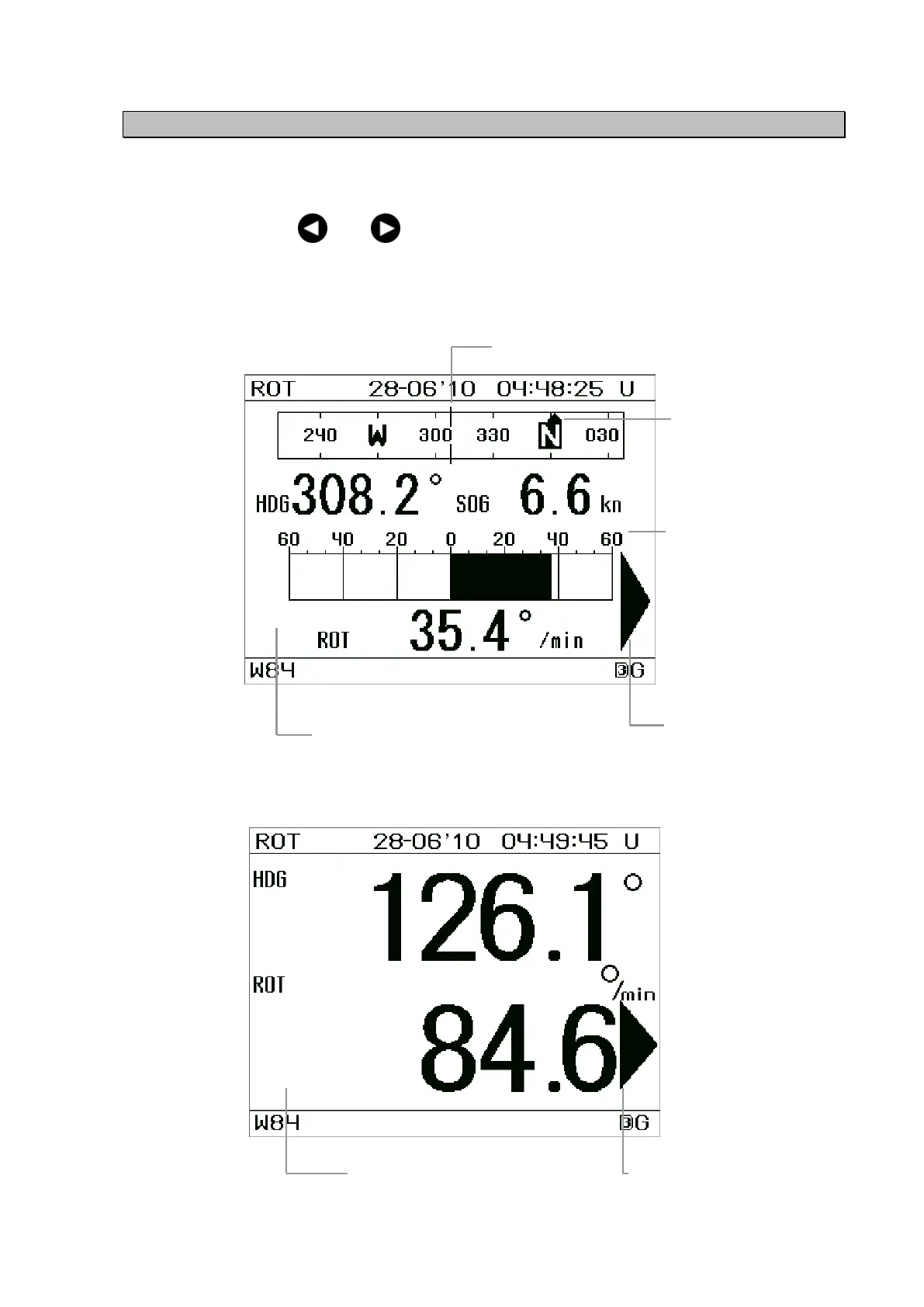 There are two types of turn rate screens (A and B), and they can be cycled between using