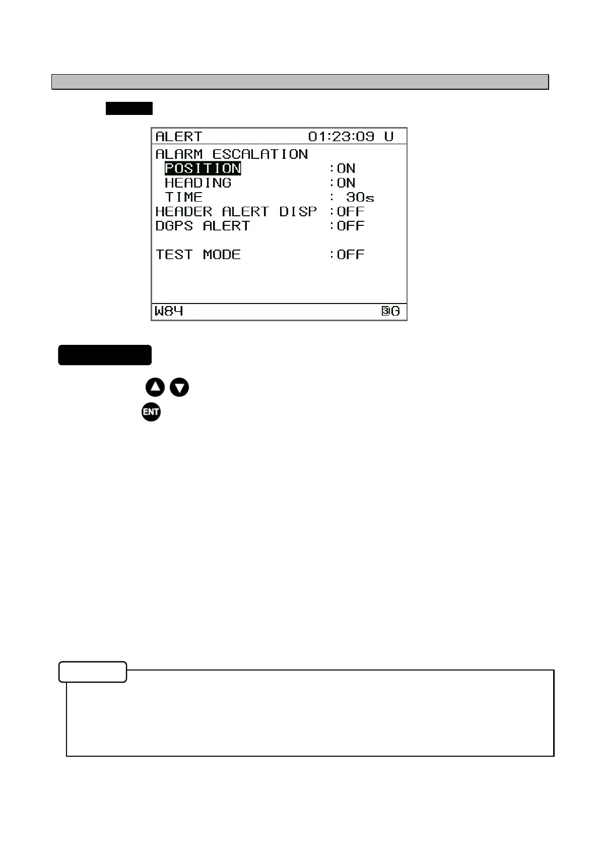 • ALARM ESCALATION: Select whether the “No positioning” or “No Heading” warning