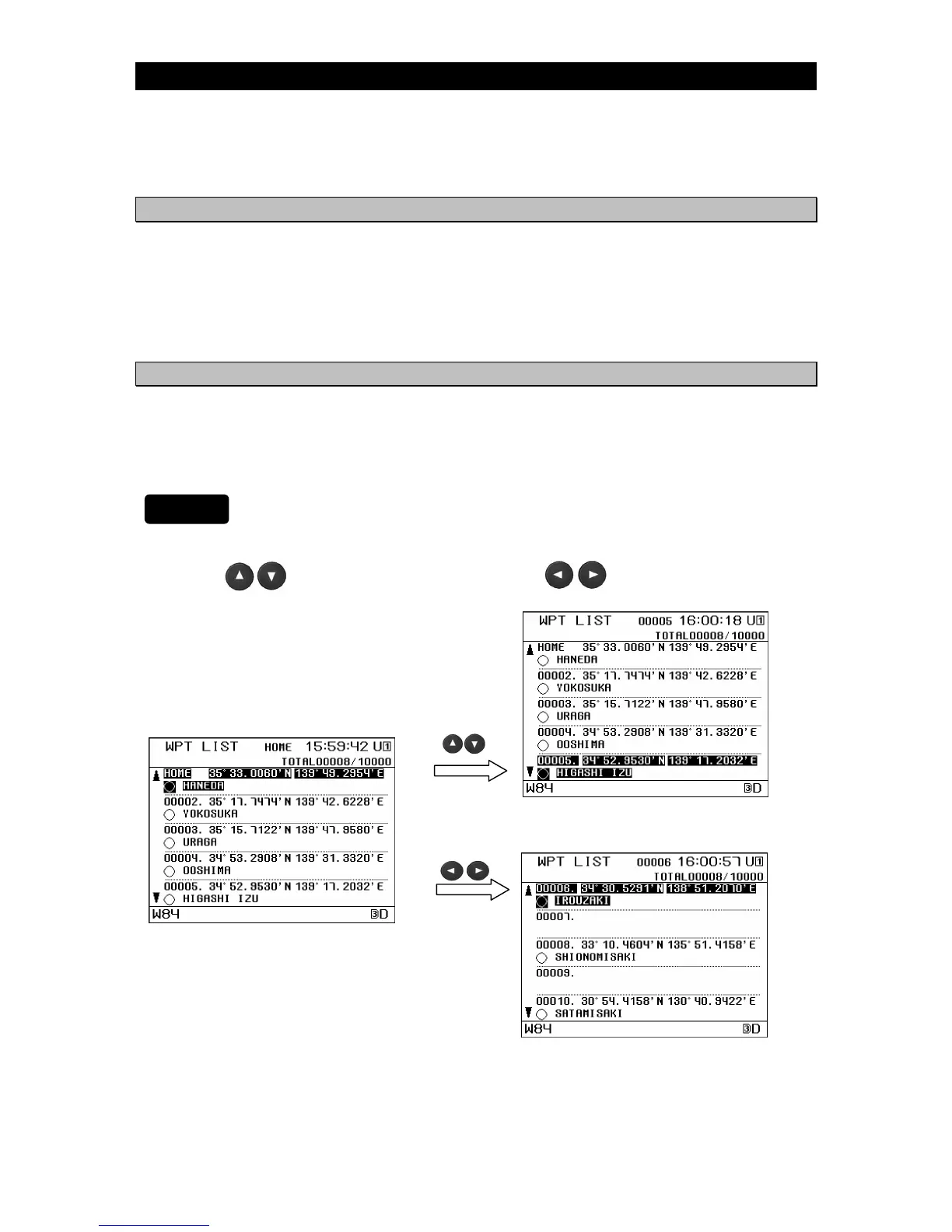 The operation examples show cursor movement within the waypoint list, but the instructions