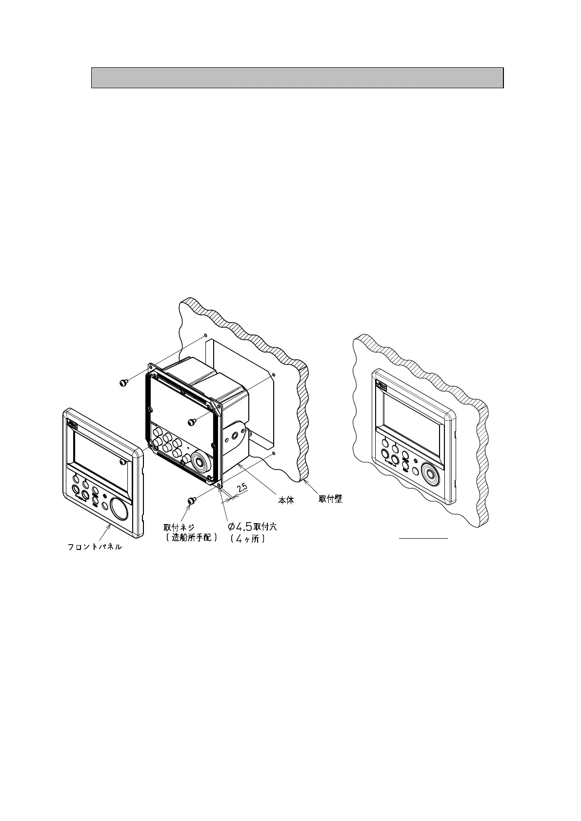 (2) 取り付けネジ(φ4 のネジまたは木ネジ、L10mm 以上、造船所手配)にて本体を固定する。