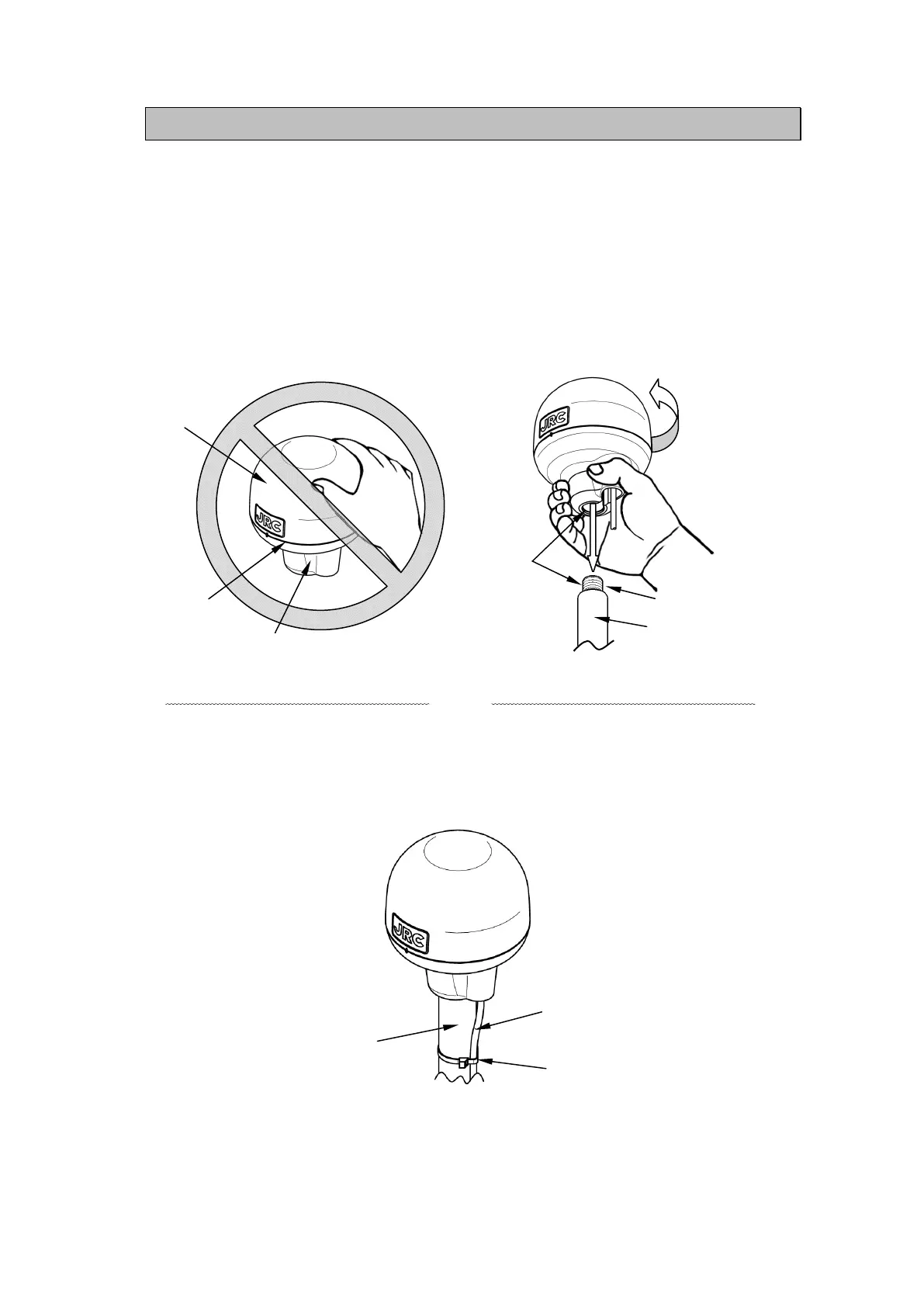 (1)取付の際には、必ず受信機のベース部分を握って回してください。レドームを握って回すと、