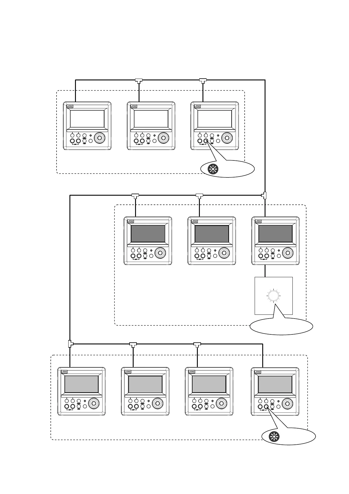 以下に 10 台(最大接続数)を 3 台/3 台/4 台でグループ化した例を示す。
