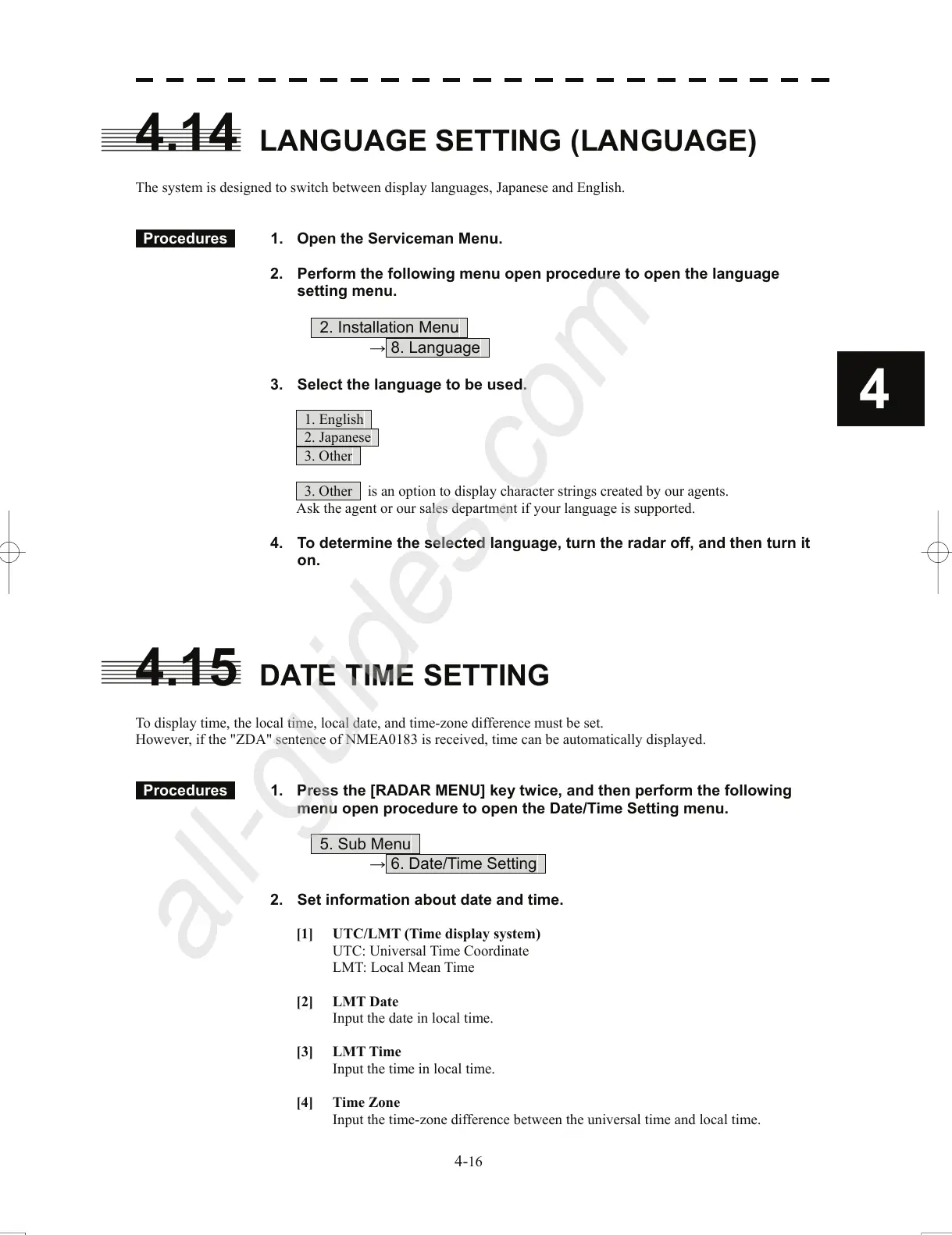 JRC JMA-5312-6HS - Language Setting (Language); Date Time Setting