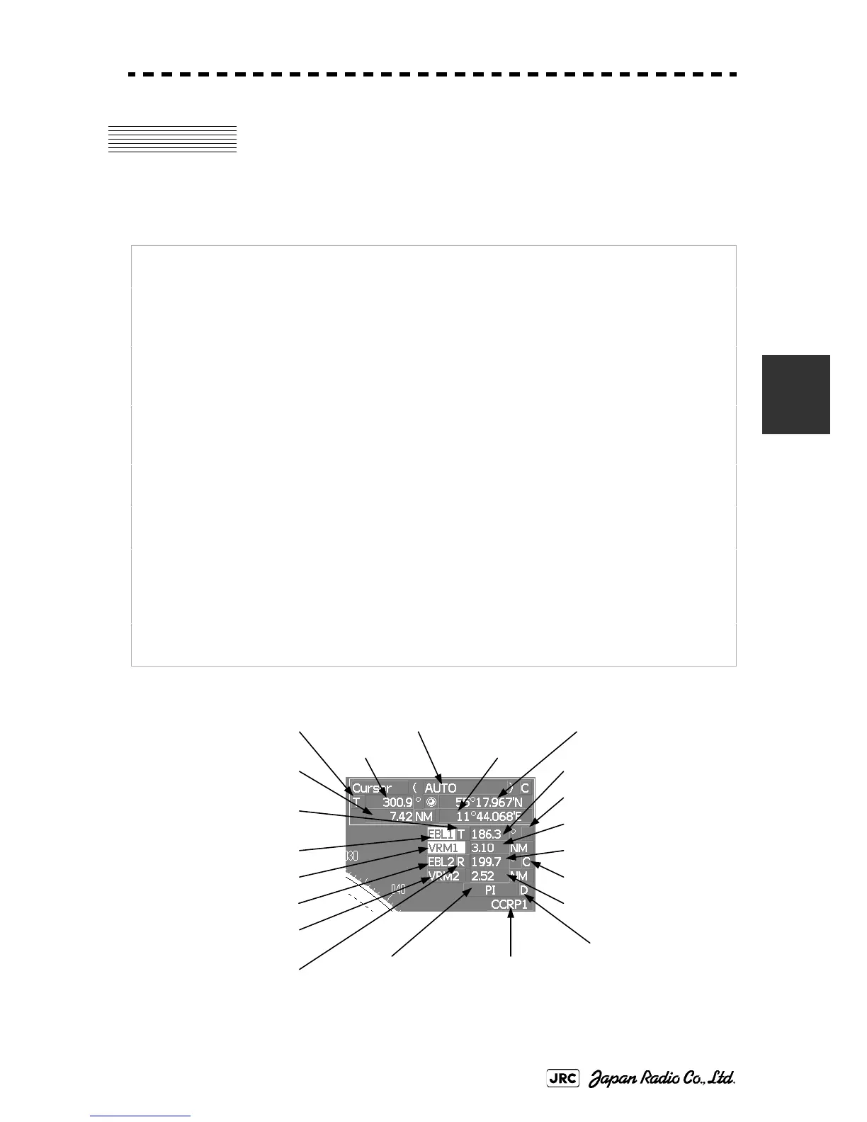 Cursor: Specifies an arbitrary point, and measures the range and bearing