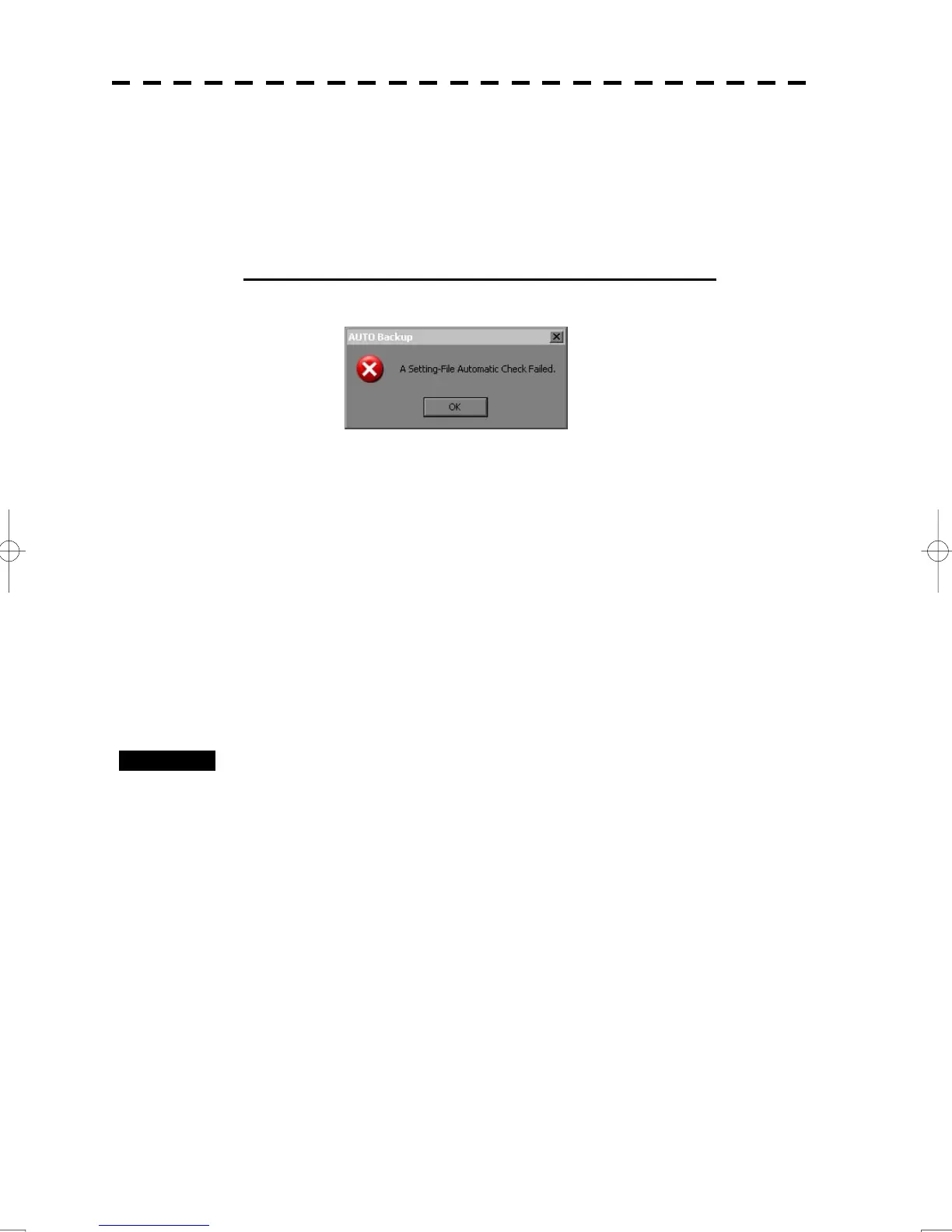 In case of application start-up, when a message “A Setting File Automatic Check Failed”, is