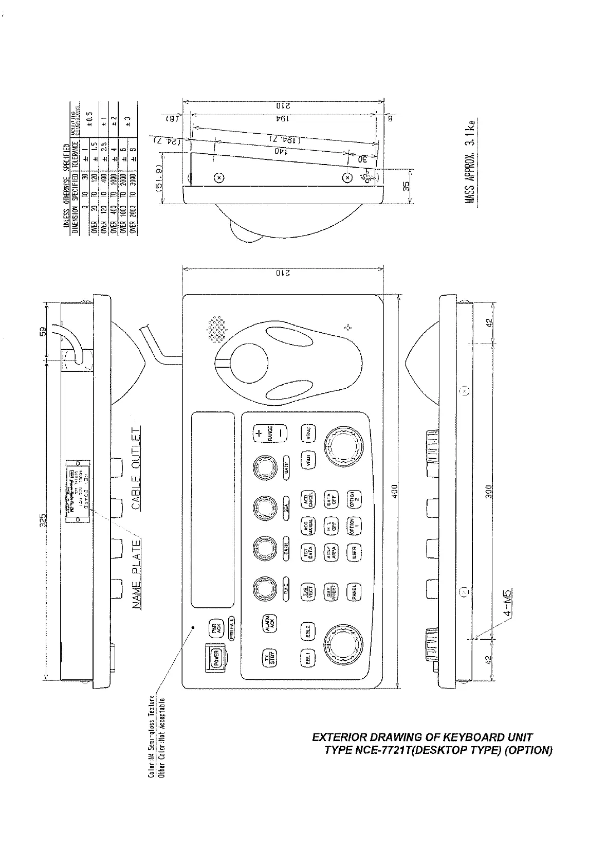 JRC JMA-9900 Series - EXTERIOR DRAWING OF KEYBOARD UNIT TYPE NCE-7721 T(DESKTOP TYPE) (OPTION)