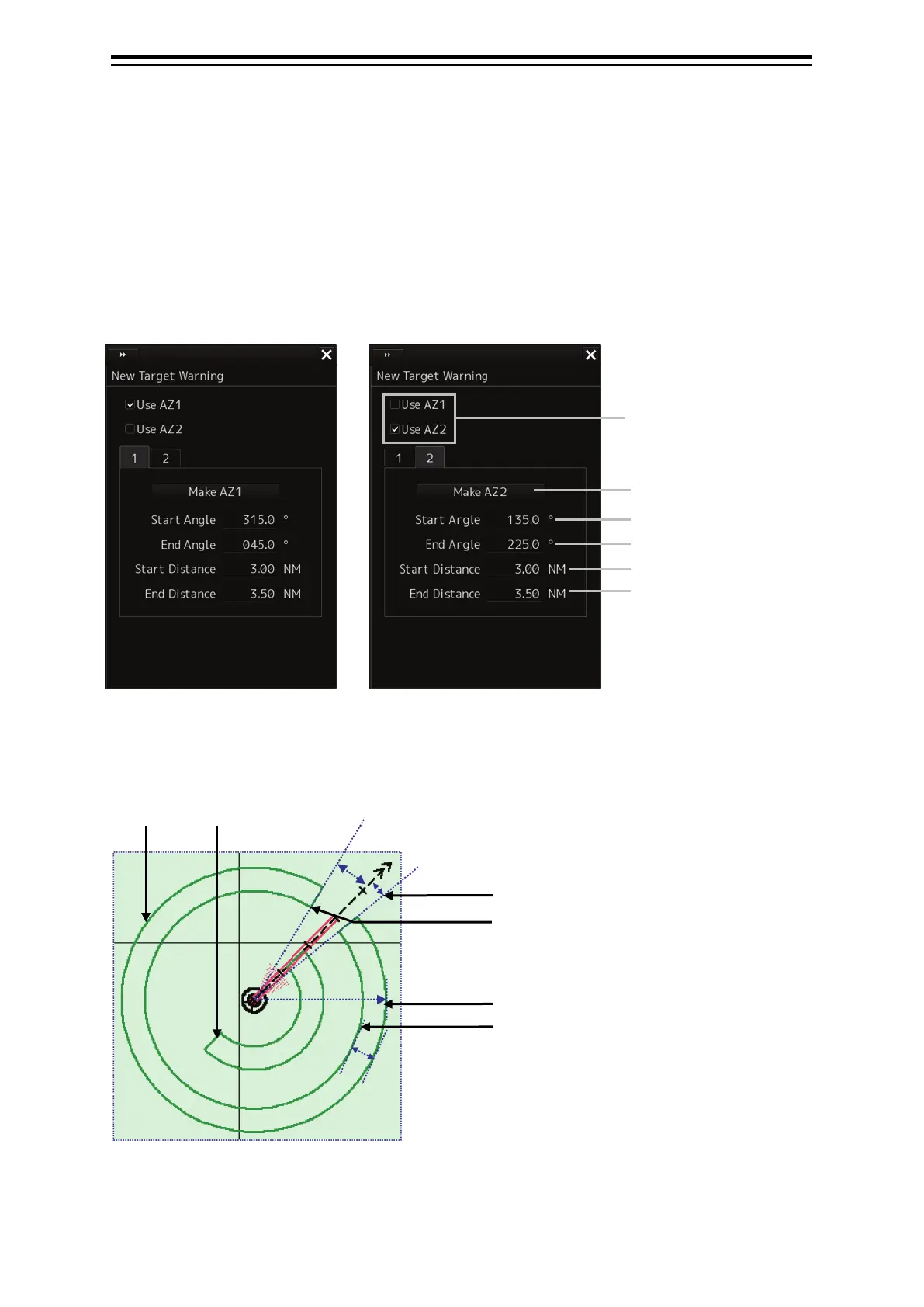 In this dialog, it is possible to set the AZ (automatic acquisition/activation zone) and switch the AZ to