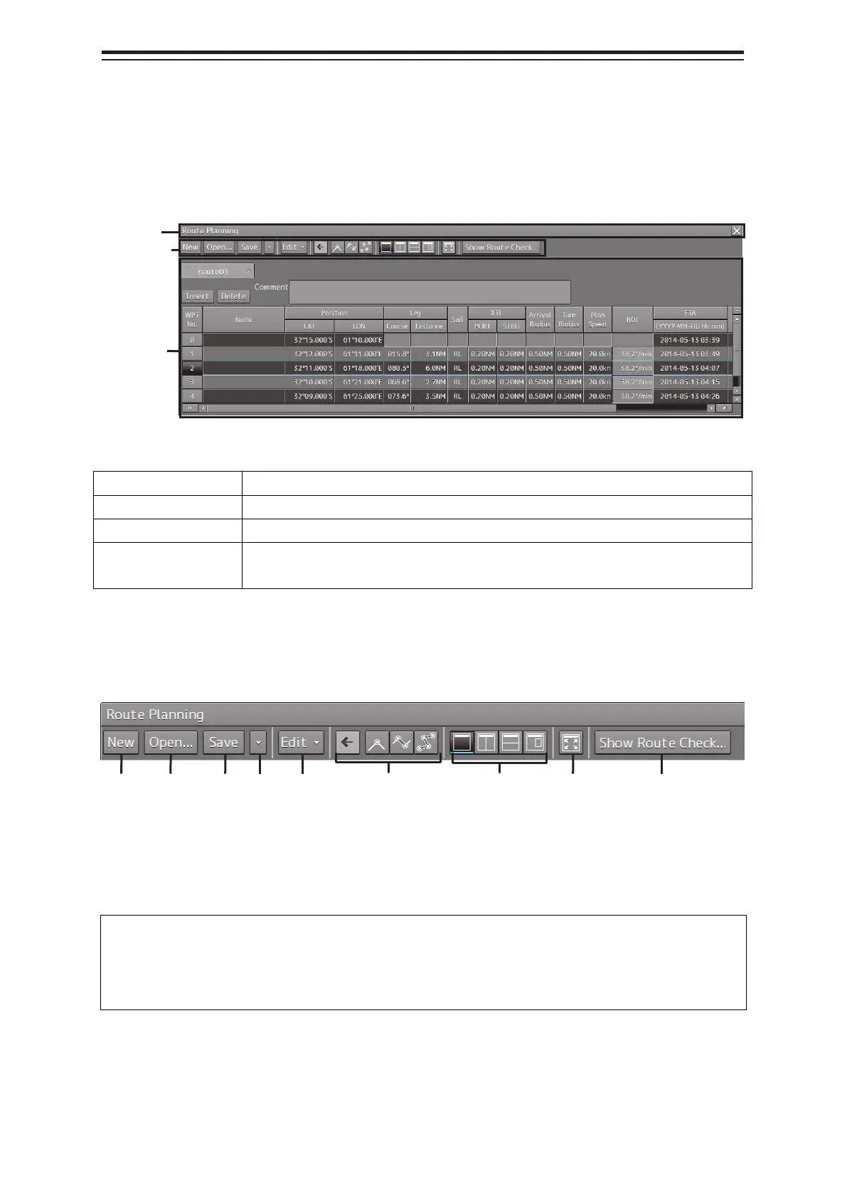 Route Planning bar Route planning tools are assigned (Refer to "9.4.1 Route Planning bar".).