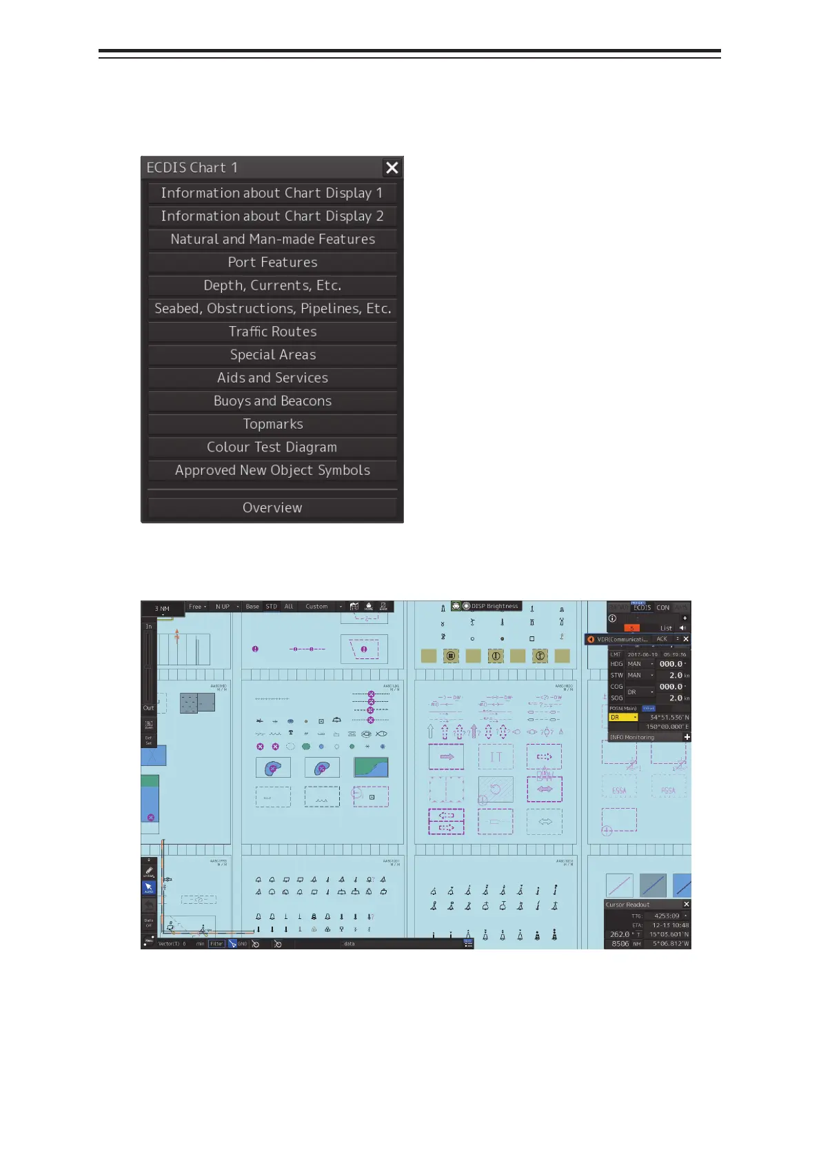 1 Click MENU-[Chart]-[ECDIS Chart 1] to display the [ECDIS Chart 1] dialog.