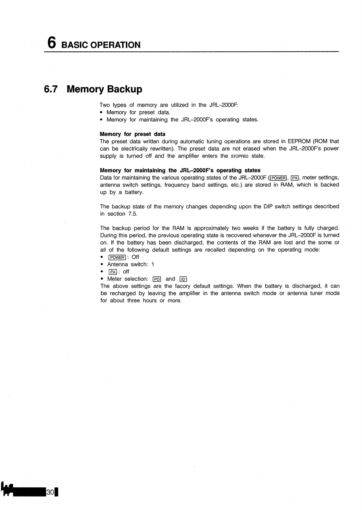 Memory for maintaining the JRL-2000F's operating states.