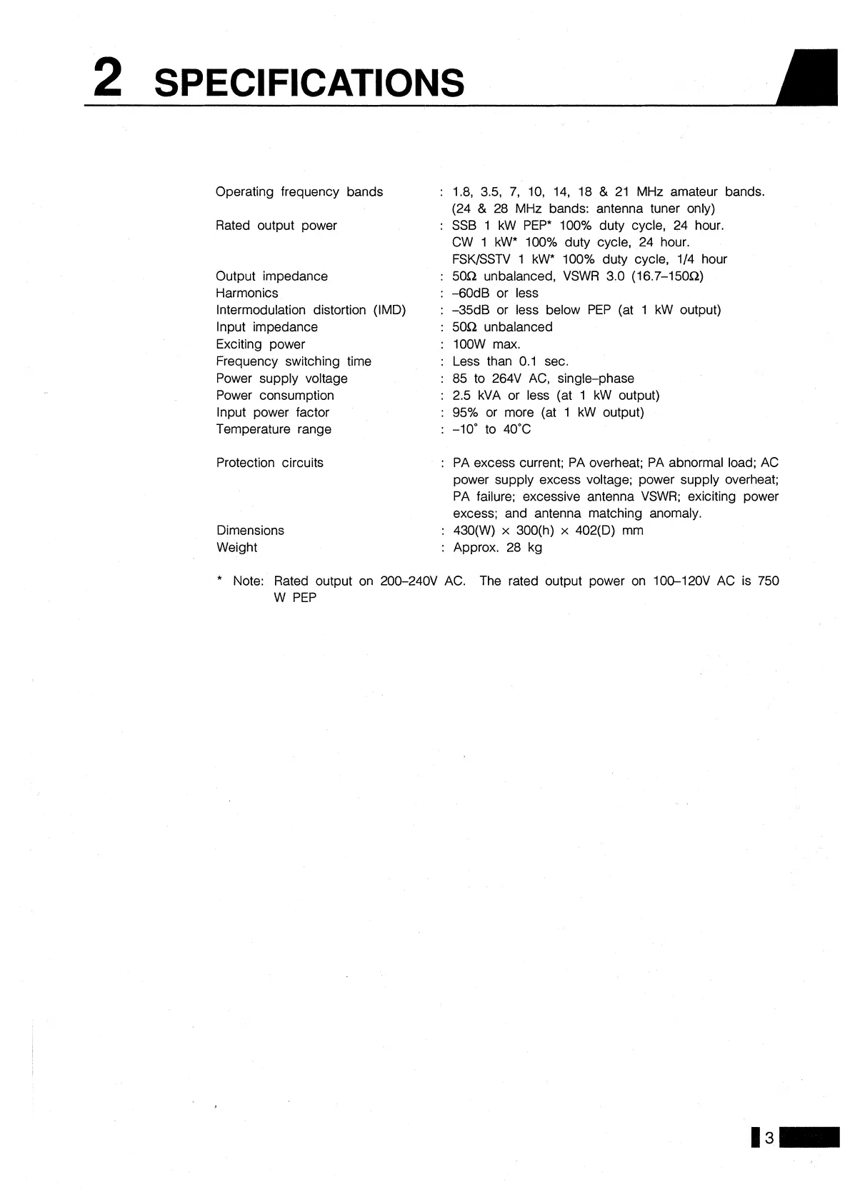SSB 1 kW PEP* 100% duty cycle, 24 hour.