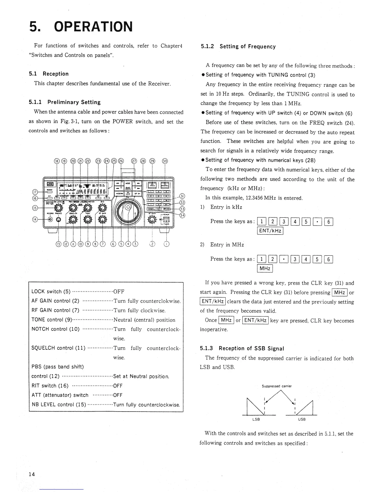 JRC NRD-525 - Operation; Reception; Preliminary Setting; Setting of Frequency
