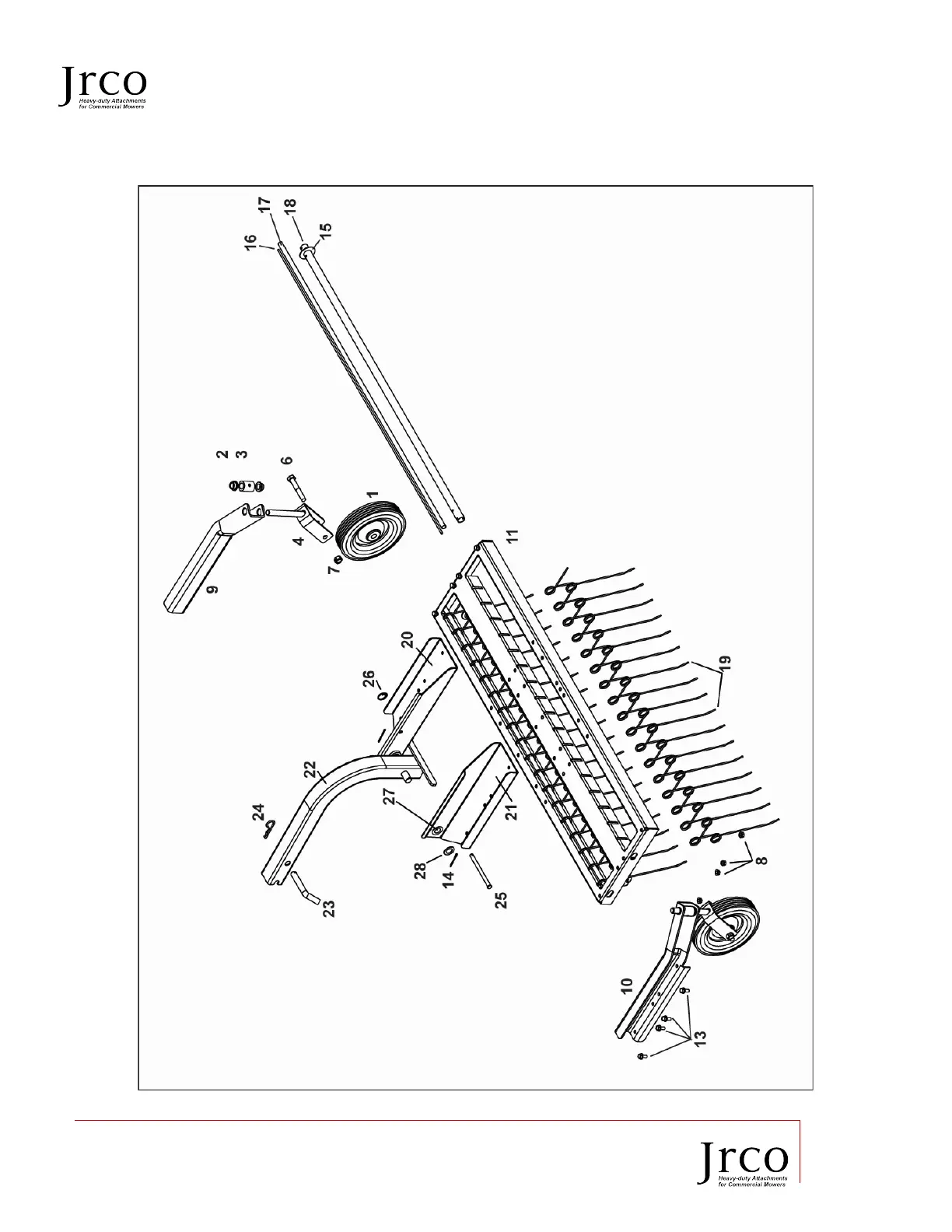 Jrco Tine Rake Dethatcher - 2.2 Parts Breakdown
