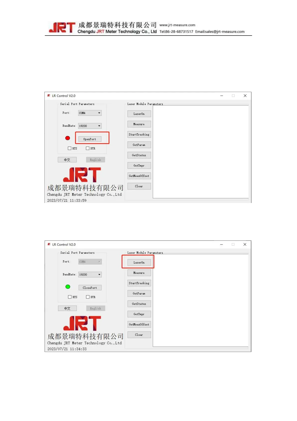 JRT M88B - Opening the Serial Port; Activating the Laser Beam