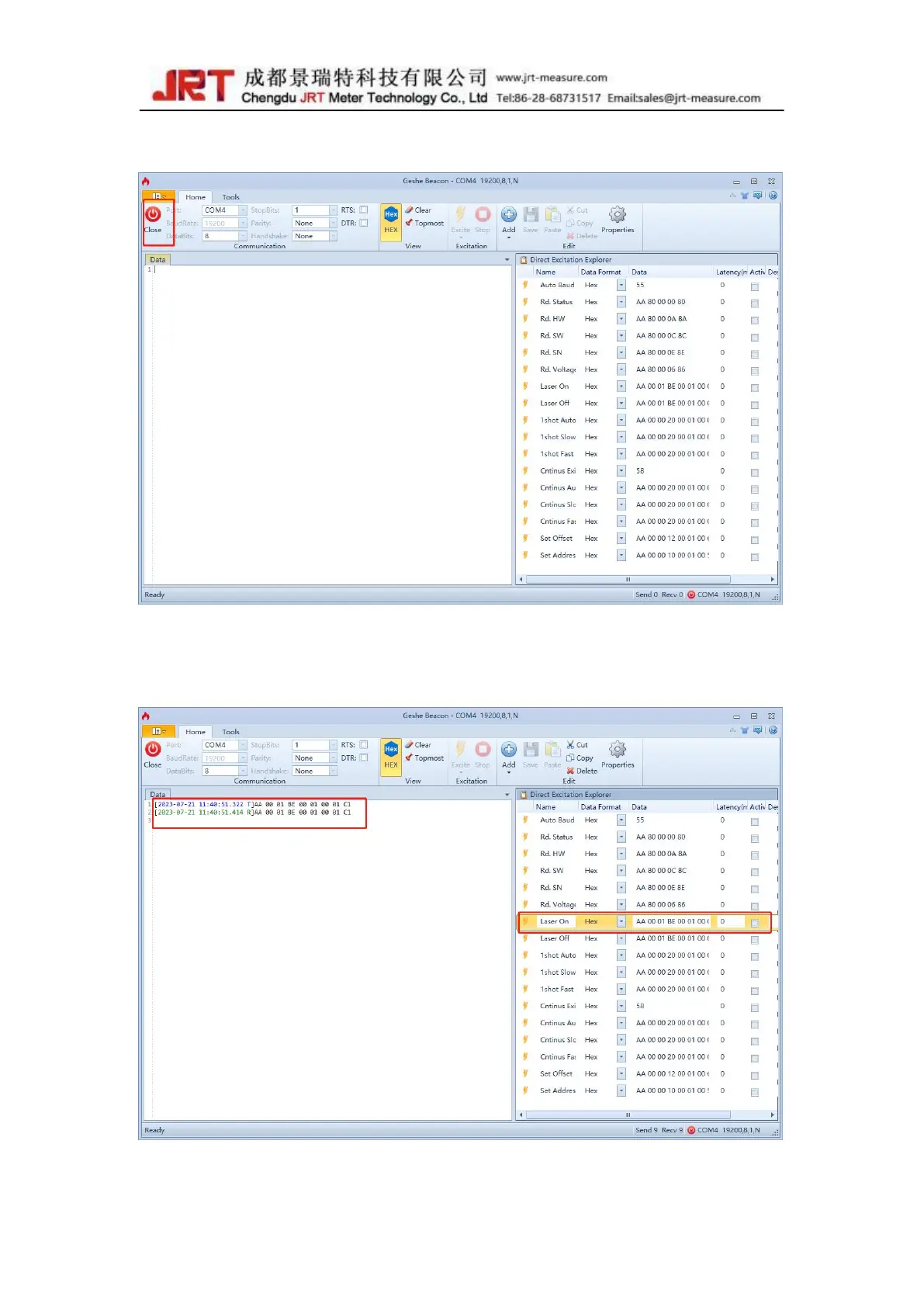 5. Click on Laser On, the command returns C1, and the laser turns on