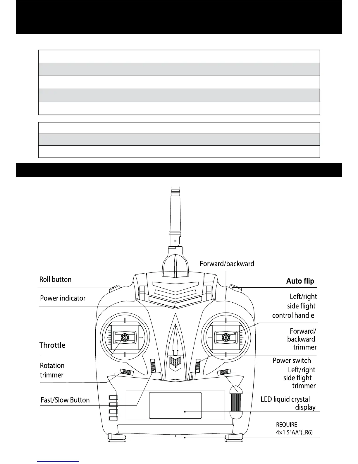 2. Remote controller battery: 4 x 1.5”AA”(LR6) (Not included)
