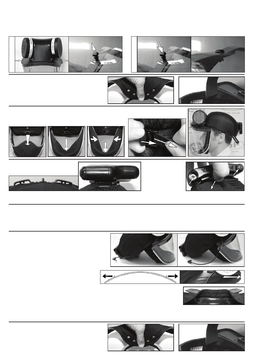 The PowerCable stays above the peak. The Seal Skirt ends go below the peak. Ensure that the Drive Unit & Visor assembly has rmly located into the recess in the Cap peak and