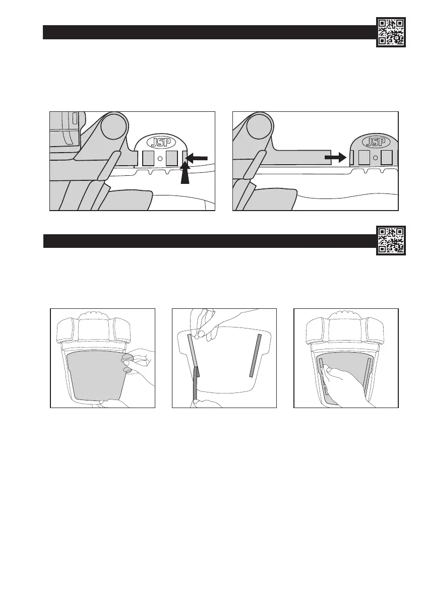 2. Dra av skyddsremsan från tejpen på båda sidor av det nya visirskyddet.