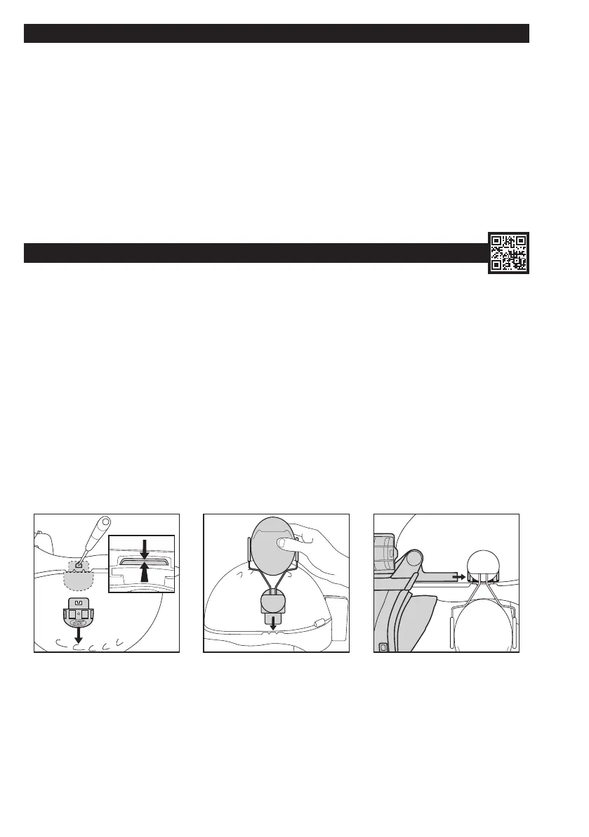 sivuvarsien takaosaa kypärän kuorta kohti ja työntämällä niitä eteenpäin. (ks. Käyttöyksikön ja visiirin pidikkeen irrottaminen ja vaihtaminen).